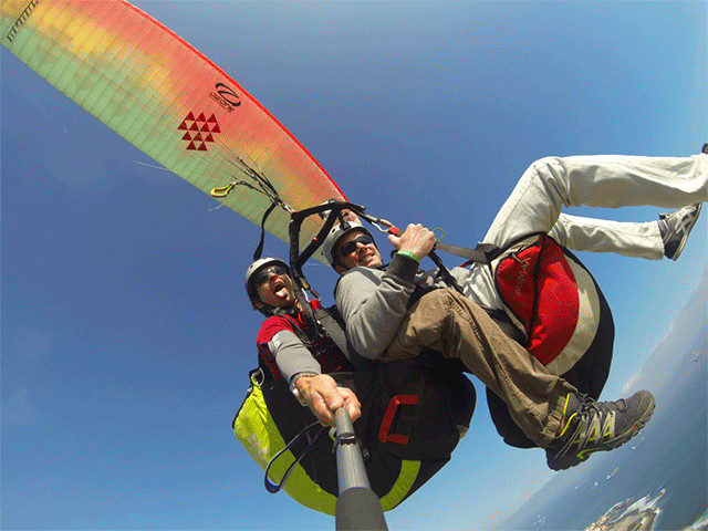 Vuela en la zona de Los Giles o Las Coloradas dependiendo el viento. En ambos vuelos se pasa sobre el mar.