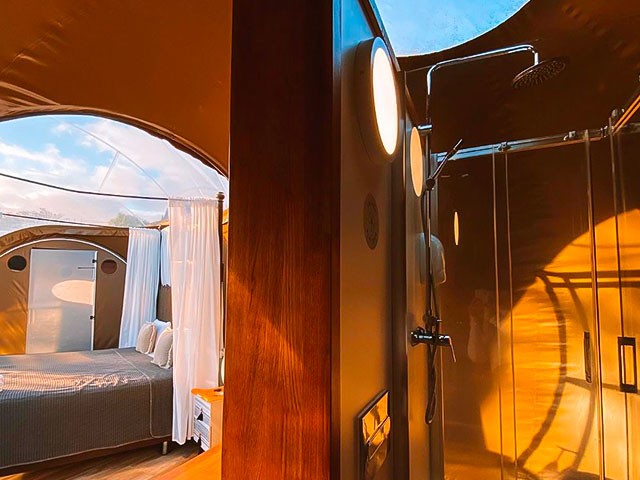 Bubble Andrómeda: Equipada con aire acondicionado, calefacción, cama king size 2X2, telescopio, mininevera, jacuzzi externo