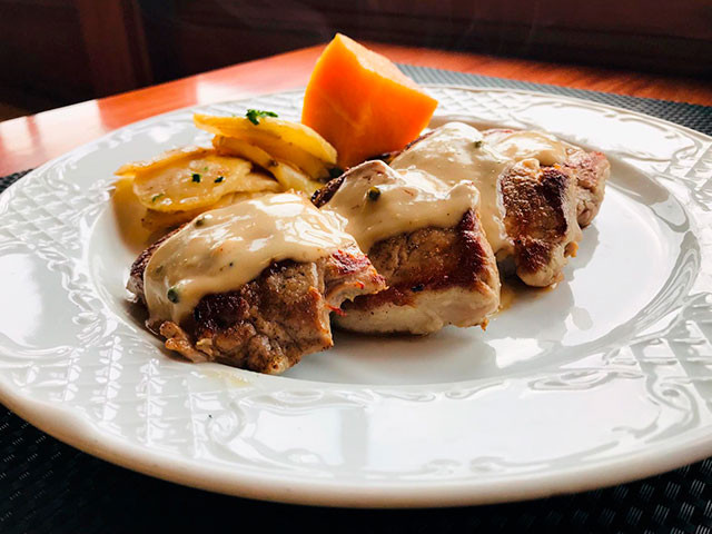Medallones de solomillo de cerdo con salsa a elegir entre: pimienta, champiñones o roquefort