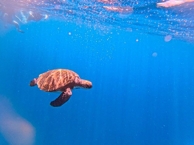 Comienza en la playa "La Arenita" ubicada en Palm-Mar, se dirigen hacia la zona de las piscifactorias donde mayormente se podrán ver los delfines y las tortugas, luego se desplazan hacia la pared de la montaña de guaza (El bufadero, punto de snorkel y buceo), donde realizarán el snorkel (lugar con buena visibilidad, variación de fauna y profundidades). Finalizado el snorkel se desplazan hacia la cueva del Palm-Mar, para luego finalizar la excursión retomando a la playa