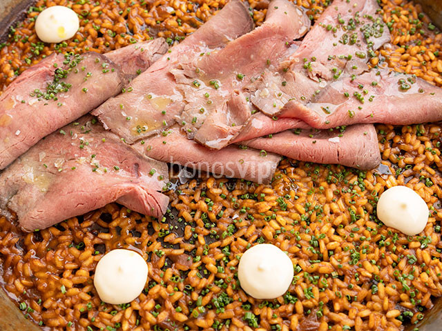 Arroz seco de carne: Sumérgete en una experiencia culinaria que celebra la riqueza y el sabor del Mediterráneo con nuestra paella de carne