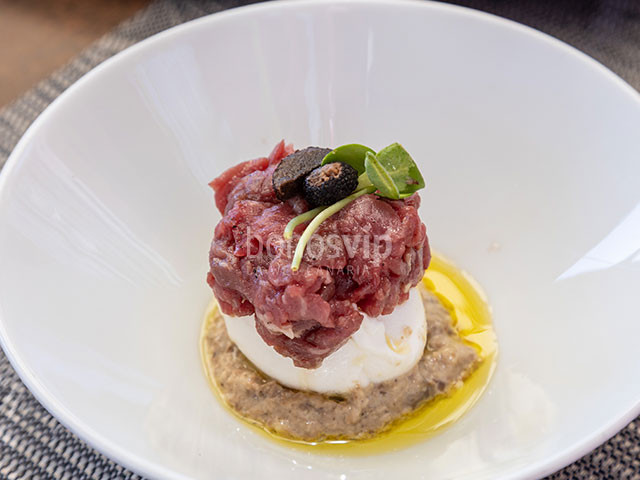 Battuta y Burrata: Fresca y cremosa burrata acompañada de un delicioso tartar