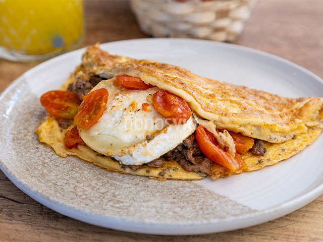 Tortilla Versalles: Champiñones, tomates cherry y queso parmesano