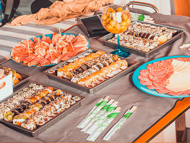 El picoteo puede incluir bandeja de sushi y paella pidiéndolo al hacer la reserva por un suplemento a pagar directamente a la empresa