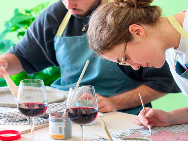¿Quieres probar la cerámica? ¡Estás en el lugar correcto! ¿Por qué no te unes al taller de Embarrarte? Preparate para ensuciarte las manos y soltar tu creatividad. Imagina: cerámica en tus manos, pinceles en acción y una copita de vino. Crea, ríe y disfruta en un taller donde el arte y el buen gusto se mezclan