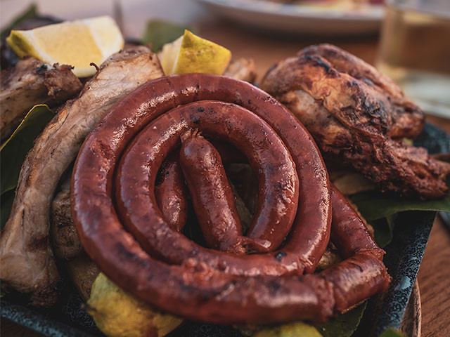 Pollo, costillas, butifarra, pancetta de cerdo