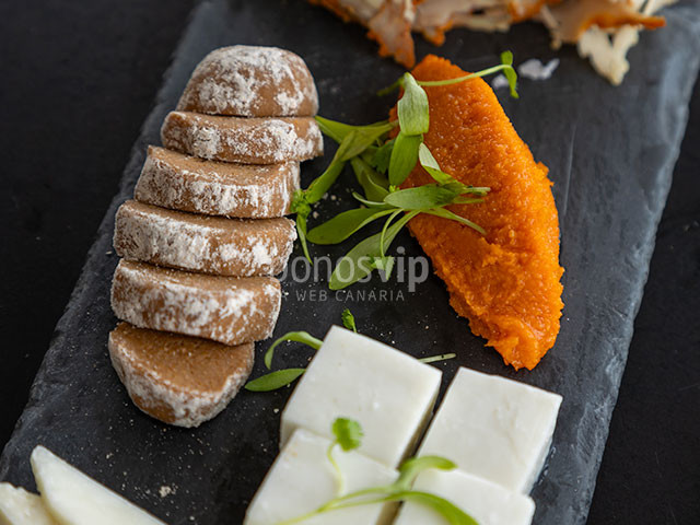 Tabla canaria: selección de quesos canarios, pata asada tradicional, almogrote y pellita de gofio