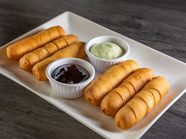 Caprichosa (pechuga de pollo, chuleta ahumada, tiras de bacon, cebolla caramelizada, salsa de bacon y salsa de pimientos ahumados)
