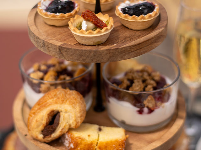 Mermelada de fruta, mantequilla y Nutella (pueden servirse juntos como acompañamientos)