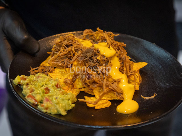 Nachos del Teide: totopos crujientes con queso fundido, mojo rojo, guacamole y carne mechada al estilo canario
