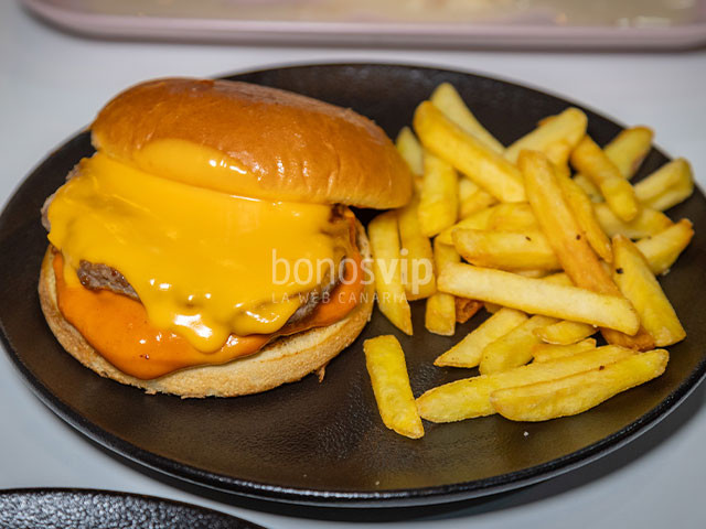 La Gomera Melt: carne jugosa, queso de cabra gomero fundido, cebolla caramelizada y un toque de miel de palma
