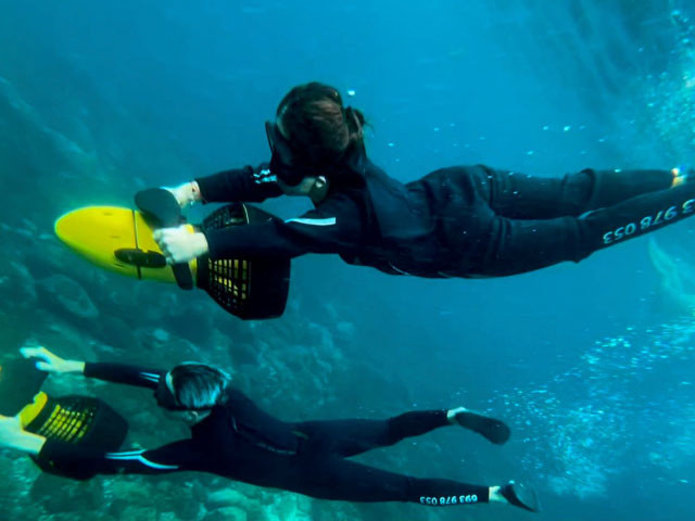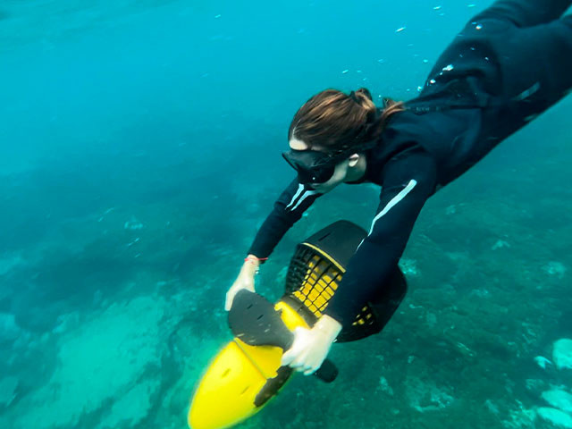 Explora el océano de una manera que jamás habías imaginado con Break the Sea Experience. Vivirás una aventura submarina con propulsores que te llevará a descubrir los secretos del mar mientras disfrutas de la velocidad y la magia de la naturaleza de Tenerife. Siente la adrenalina y maravíllate con la belleza de las aguas cristalinas y la increíble variedad de peces, como nunca habías imaginado. Esta travesía única combina acción y conciencia medio ambiental, ofreciéndote una experiencia inolvidable que conecta diversión y respeto por el mundo marino. ¡No te pierdas esta experiencia submarina única!