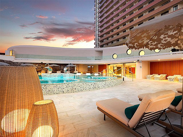 En un entorno elegante inspirado en la música, Rock Spa® es un fabuloso espacio de 1.583 m² de bienestar donde cuerpo y mente se reconectan. Un ambiente cuidado al detalle para que vivas una experiencia de lujo, calma y armonía. Entre infusiones, música suave y piscinas transparentes… este spa se lleva el premio a la parada más cool de tu gira personal