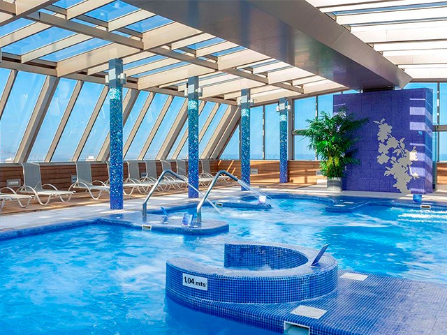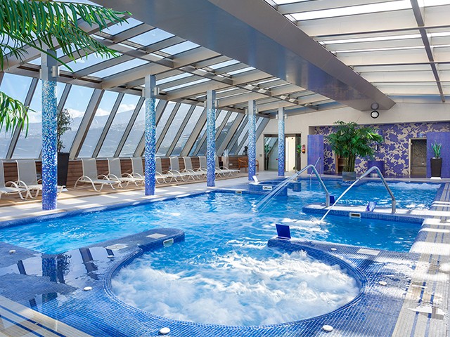 El Meliá Costa Atlantis - YHI Spa pone a tu disposición un completo Spa que destaca por su impresionante cúpula transparente en la planta 14 del edificio lo que le proporciona una vistas espectaculares sobre el mar y el Teide