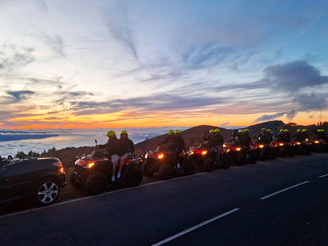 Comienzan con la lectura de las normas y un registro donde se visualizarán las licencias y se comprobará si tienes todos los requisitos para poder conducir el quad. Posteriormente, llegará el momento más importante: el briefing, durante el cual nuestros guías te explicarán las normas y funcionamiento de los vehículos y te dejarán probarlo. Recorrerán 50 km partiendo de Granadilla de Abona, atravesando Vilaflor y ofreciéndote impresionantes paisajes a lo largo de todo el recorrido. Podrás admirar las otras islas del archipiélago canario: La Gomera, La Palma y El Hierro, hasta llegar al Parque Nacional del Teide, al pie del volcán a 2400 metros de altura, donde un paisaje casi lunar te recibirá y donde la última explosión data de hace más de 100 años. Aquí harán una parada y mientras sus guías te describirán brevemente la historia del volcán y tomarán fotografías de recuerdo. Con la opción Teide sunset antes de concluir el recorrido, harán una última parada en el Mirador de Juan Évora para admirar un espectacular atardecer